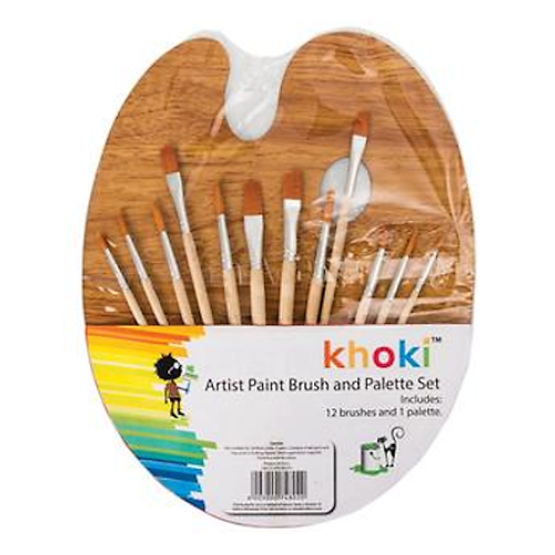 Set Includes: 12 x Assorted Premium Paint Brushes with Wooden Handles and 1 x Palette