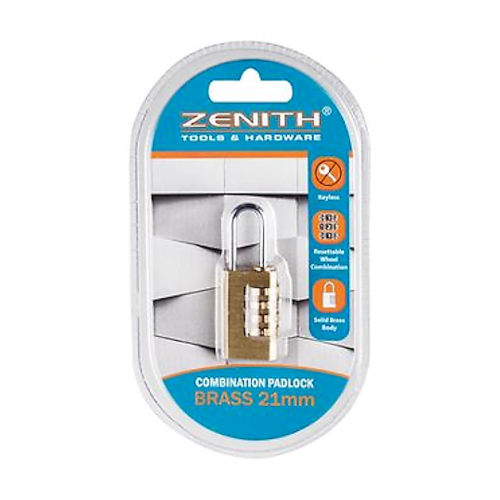 Brass Combination Padlock - 4 Wheel Resettable (21x35mm)