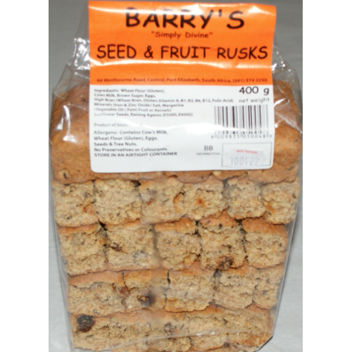 Ingredients: Wheat Flour (Gluten), Cows Milk, Brown Sugar, High Bran (Wheat Bran, Gluten, Vitamin A, B1, B2, B6, B12, Folic Acid), Minerals (Iron & Zinc Oxide), Salt, Margarine (Vegetable Oil), Palm fruit or Kernels, Sunflower Seeds, and Raising Agents (E500ii, E450i)