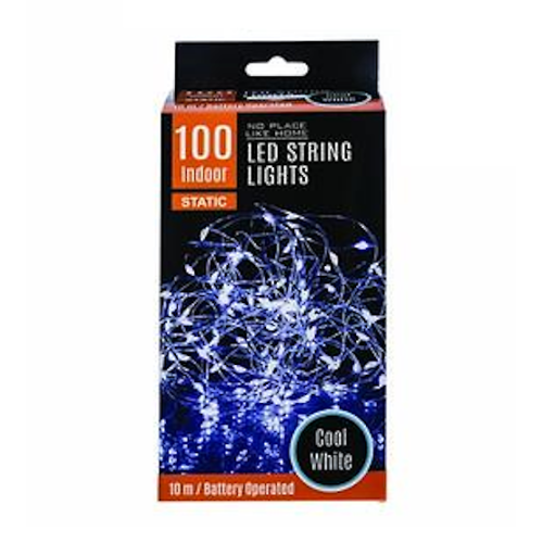 Battery Operated LED String Lights - Indoor / Cool White, 10 metre