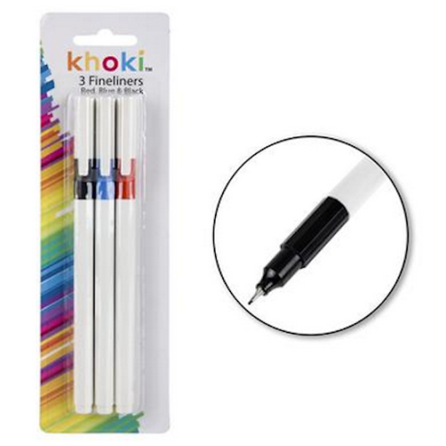 3 Piece Fineliners 0.4mm - Black, Blue & Red