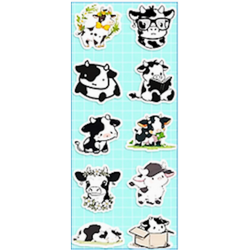 Cute Black & White Cow Stickers 10's - Sold Assorted