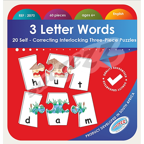 • Includes 20 self-correcting, interlocking three piece puzzles.