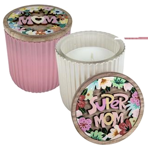 Scented Candle with Glass Holder & Carved "Mom" Lid, 9 x 9.4cm, assorted