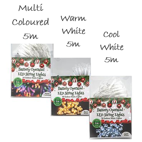 Christmas - LED Lights - Battery Operated, Static, 5m Assorted