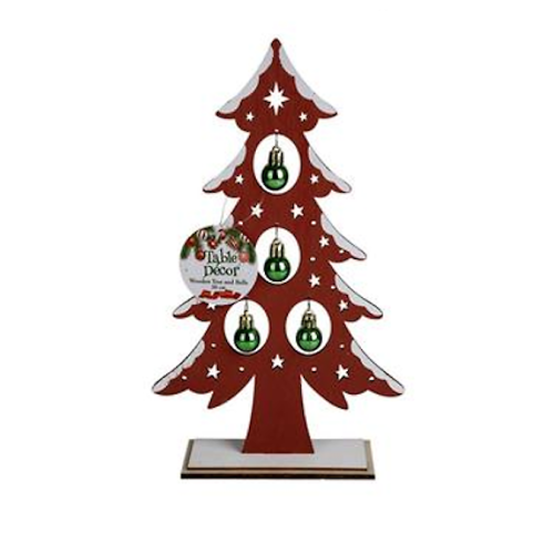 Christmas Table Décor Wooden Tree & Bells 30cm