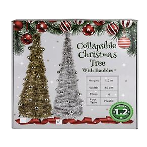 Collapsible Christmas Tree with Baubles, 1.2m, Assorted