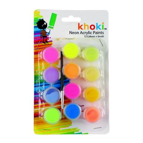 Acrylic Neon Paint Set - 12 Colours + Brush