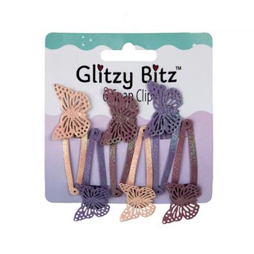 Hair Clips, Snap-on Butterfly - 6 Piece