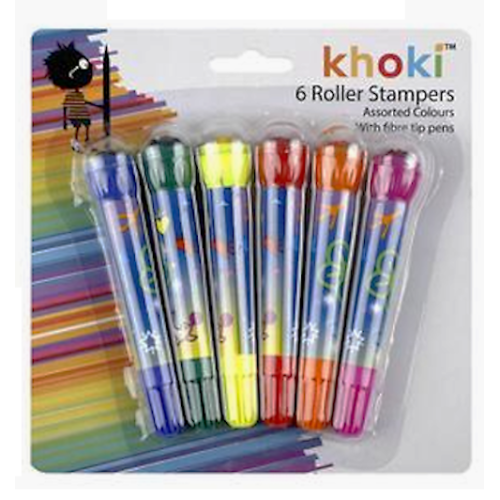 Felt Tip Pens with Roller Stamp - 6 Piece