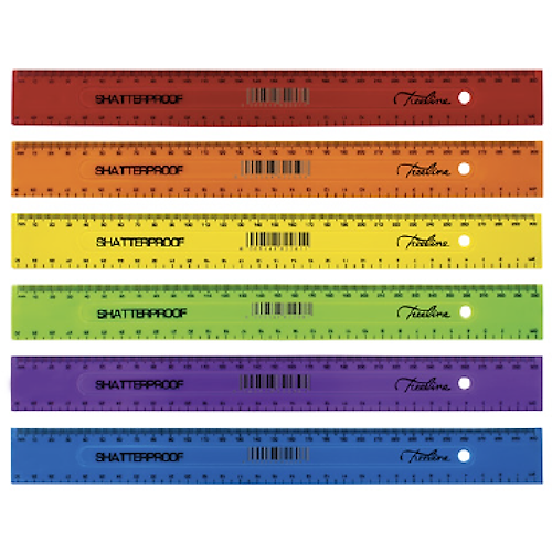 Treeline 30cm Shatterproof Rulers - Assorted Colours