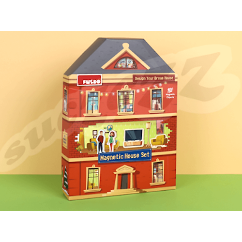 The magnetic house is specially designed as a book format made of foam and 100 different furniture items and household appliances.
