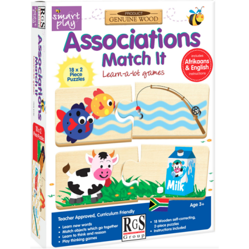 Associations can be described as the way in which the brain associates one object, picture or idea with another. Learning to associate one object with another will help your child to think and reason in a logical manner. Detailed instructions will help you communicate with your child while he/she matches the objects depicted on these 18 colourful 2-piece puzzles. Your child will enjoy talking about the 36 pictures and playing games which include riddles and absurdities. Age 3+.