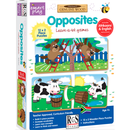 Opposites are unlike each other in every way! These 2-piece puzzles will not only develop thinking and reasoning skills but also the vocabulary to confidently express him/herself. Opposites can be used to compare time, distance, behaviour, gender, position, directions, taste, etc. The opposites illustrated on the puzzle pieces have been chosen to encourage discussion and active participation. Age 4+.