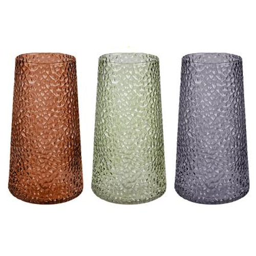 Glass Vase with Triangle Pattern 22cm - assorted colours